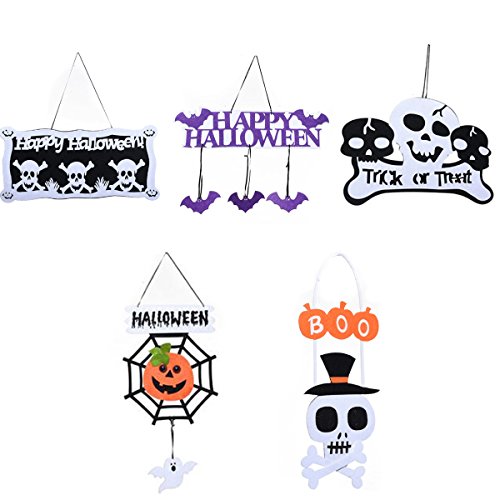 - As is shown in:bats,skull,pumpkin,5 different hanging decoration.