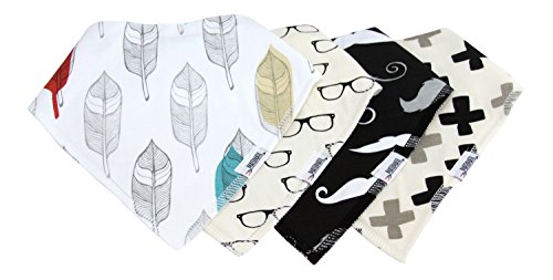 -. Binding : Baby Product -. Brand : Matimati Baby -. EAN : 0784672454247 -. Feature : PROTECT & KEEP YOUR BABY DRY FROM DROOL & SPIT UPS - Super absorbent teething & dribble bibs maintain baby dry and comfy all day long. No more wet clothes. No more changing your baby 3-4 times a day! / YOUR BABY WILL BE DROOLING IN STYLE - Trendy, modern, and neutral patterns great for both boys & girls. Ultra comfortable design with baby in mind. ADJUSTABLE nickel-free SNAPS - bibs adjust as baby grows. / DROOLING WITH A PURPOSE - Matimati Baby® donates a percentage of every sale to Chain Reaction, a non-profit organization that fights human trafficking by rescuing and restoring children in Asia :) / UNIQUE BABY SHOWER GIFT - Best gift for new moms and dads. "We LOVE these bibs! My 2-month-old is suddenly a little drool monster and these keep his neck and outfits dry all day. Plus, they make him look so cute and really work to jazz up his ensembles." / AWESOME CUSTOMER SERVICE - We truly care about every single one of our customers. Not only are our bibs made with love, but we go above & beyond with our customer care! (Plus you get a free baby eBook with your purchase of Matimati Baby bibs) -. IsAdultProduct : 0 -. Label : Matimati Baby -. LegalDisclaimer : Remove on sleeping infants. Keep away from fire. Free Digital Copy (eBook) of "Baby's First Year" will be delivered via e-mail upon shipment of baby bandanas. Due to the handmade nature of these bibs, the pattern placement on the fabric may vary from one item to another. And since they are individually cut by hand, the actual size of the bib may slightly vary from one to another. -. Manufacturer : Matimati Baby -. ProductGroup : Baby Product -. ProductTypeName : BABY_PRODUCT -. Publisher : Matimati Baby -. Studio : Matimati Baby -. Title : Matimati Baby Bandana Drool Bibs with Snaps, 4-Pack Absorbent Cotton for Boys & Girls, Unisex Baby Gift (Glasses & Feathers) -. UPC : 784672454247