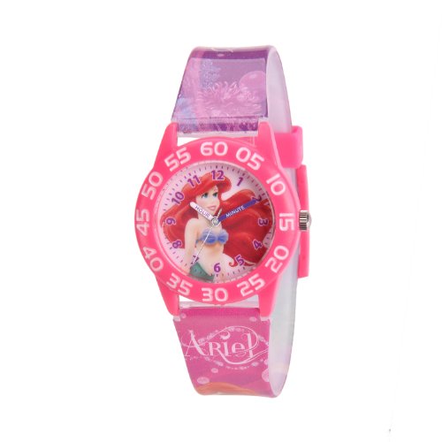 -. Binding : Watch -. Brand : Disney -. Department : girls -. EAN : 0843231074545 -. Feature : Round Time Teacher Plastic Watch with Disney's Ariel character on dial. / Meets or exceeds all US Govt requirements and regulations for Children's watches. / Recommended for Ages 3-7 years old. Includes a Time Teacher Punch Out clock for Parents to Teach their Children. / Accurate Japanese Quartz movement, scratch resistant mineral crystal, plastic strap. / Water Resistant to 99 feet: withstands rain and splashes of water, but not showering or submersion. / 1 Year Limited Manufacturers Warranty -. Label : Disney -. Manufacturer : Disney -. Model : W001191 -. MPN : W001191 -. PackageQuantity : 1 -. PartNumber : W001191 -. ProductGroup : Watch -. ProductTypeName : WATCH -. Publisher : Disney -. ReleaseDate : 2013-12-30 -. Studio : Disney -. Title : Disney Kids' W001191 "Ariel" Watch with Pink Plastic Band -. UPC : 843231074545
