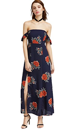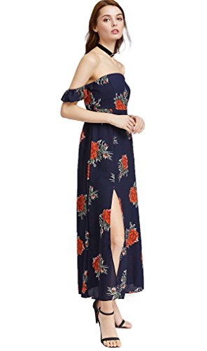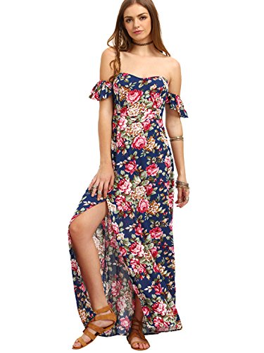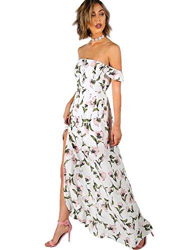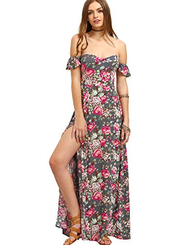 Floral Print, Short Sleeve, Backless, Elastic Band,Side Split, Sweetheart, Full Length