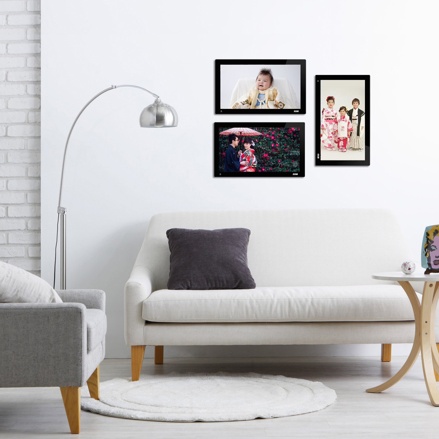 This tabletop and wall-mounted photo frame can display digital images with high definition.
