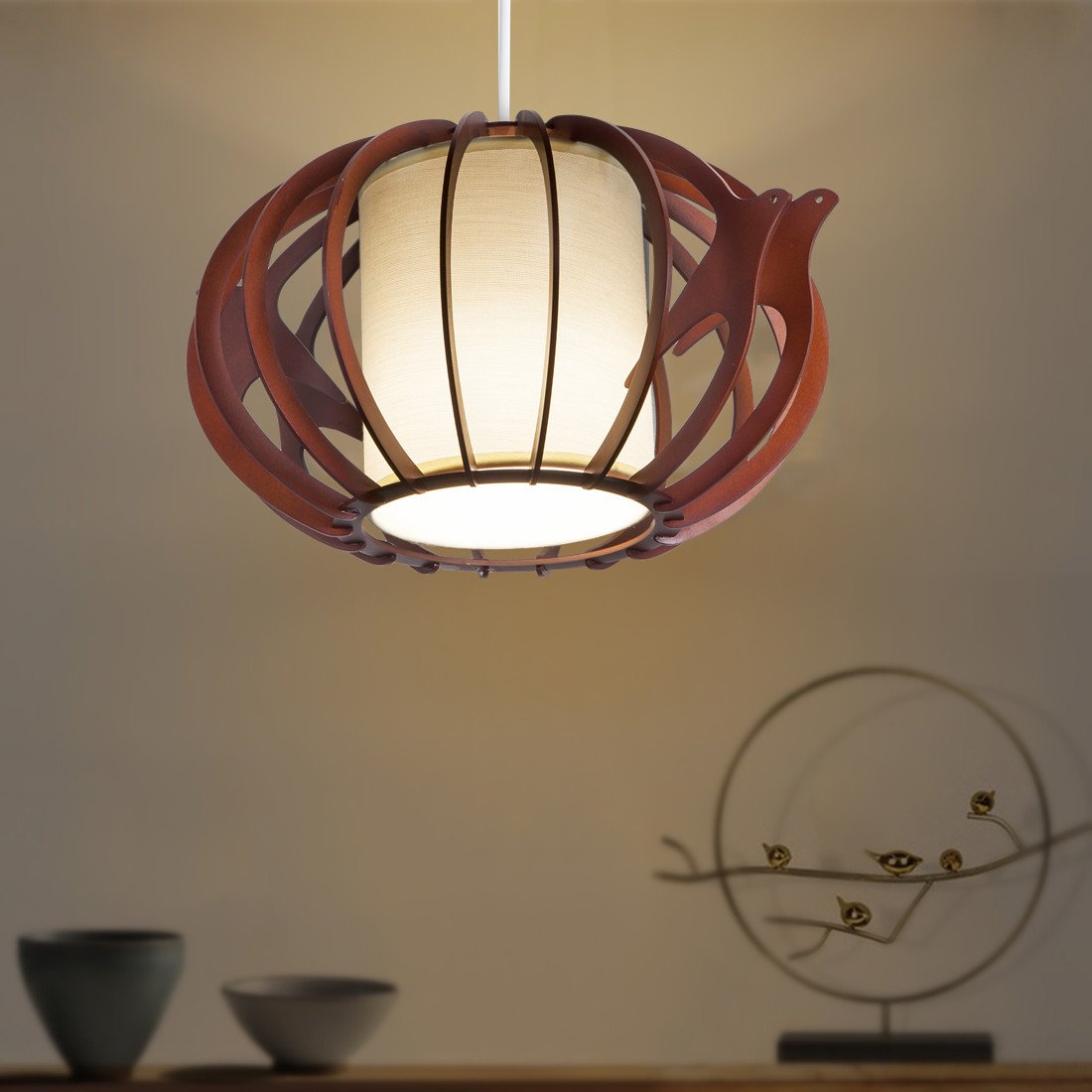 ■ Natural wooden pendant light with Scandinavian style is ideal for dining and Japanese-style rooms.