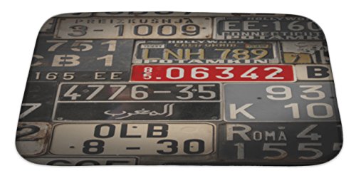 Gear New No Slip Microfiber Memory Foam Red License Plate Bath Rug Mat, 34" X 21"