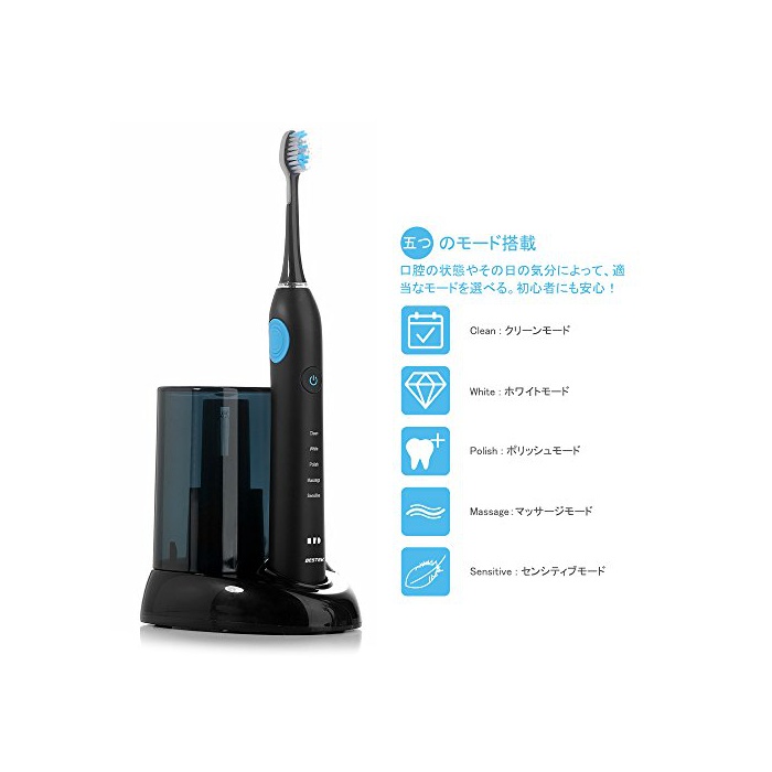 원본상품명: 電動ブラシ 替えブラシ4本付 BESTEK 音波ブラシ 舌磨きブラシ付き USB充電式 振動ブラシ UV除菌器搭載 5つモド搭載 ブラック RLT236B