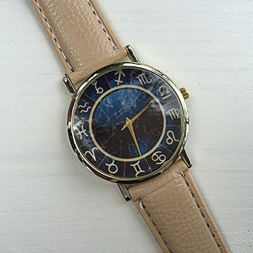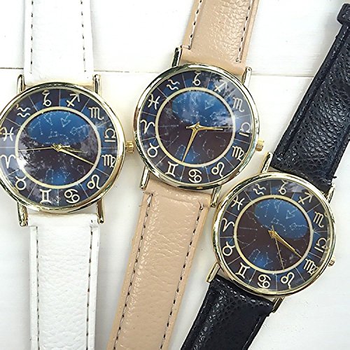 원본상품명: 腕時計 時計 ウォッチ アナログ表示 星座 デザイン文字盤 レザ?ベルト 革 男女兼用 生活防水