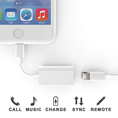 -. Feature : IMPORTANT NOTE: First step plug your headphones to this product, then connect with iPhone. Reversed steps will not make product work correctly. Please refer to User Guide for details / Universal Compatibility: Perfect Design for iPhone 7/7 Plus, and any Lightning device that runs iOS 10 or later. Supports the New iOS 10.3 system / Headphone & Charge or Sync: It can connect to the Lightning headset and charge or Syncing data at the same time. Note cannot support connect Double data sync/Double charger/Double Lightning headphone / Supports microphone and remote on Apple Lightning Headphones. Also supports Lightning to 3.5 mm Headphone Jack Adapter and 3.5mm AUX in the car / Impressive Sound Quality: Up to 48 kHz and 24-bit audio output, keep your original headphone sound quality