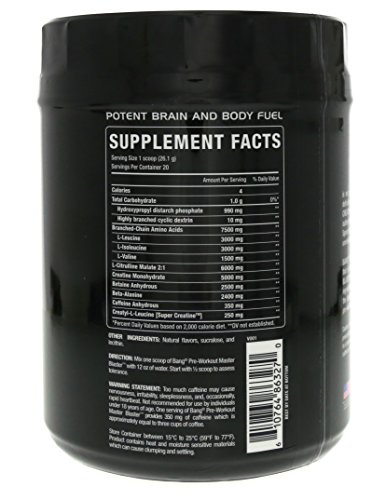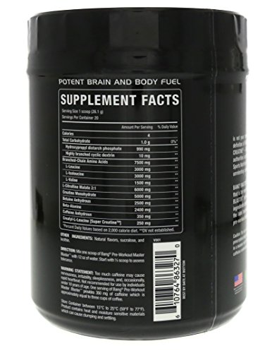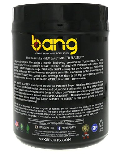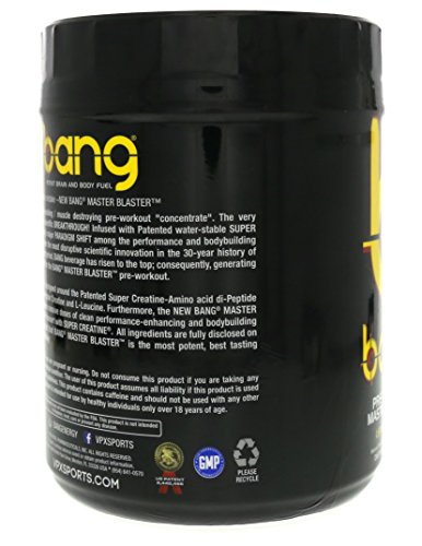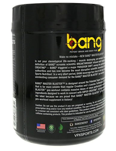 Product Description BANG MASTER BLASTER is designed around the Patented Super Creative-Amino acid di-Peptide that is far more soluble than regular Creative and L-Leucine. 0
