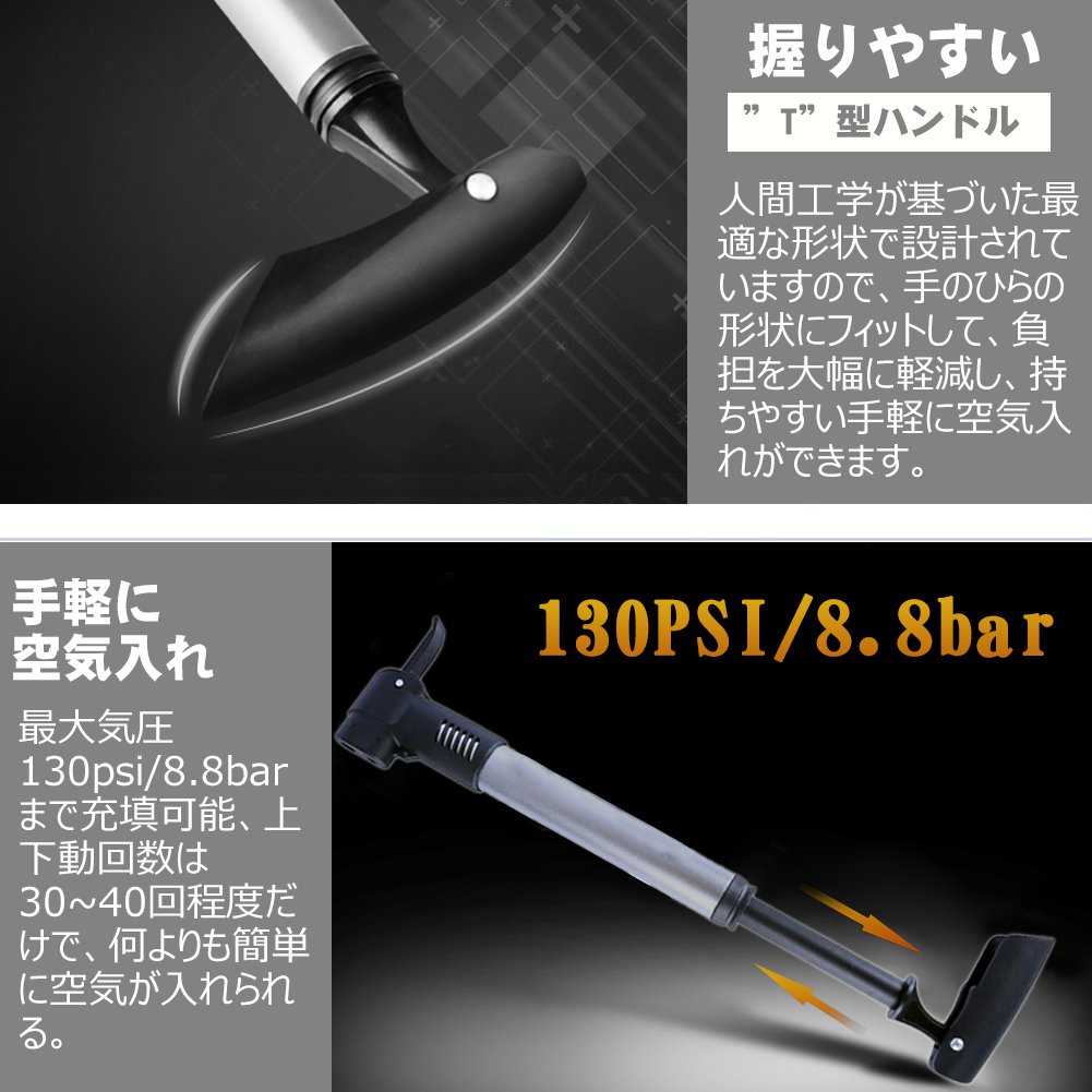 It corresponds to kinds of maximum filling pressure 130 psi, road bike, mountain bike, cross bike, etc., handy pump convenient in various scenes.