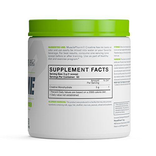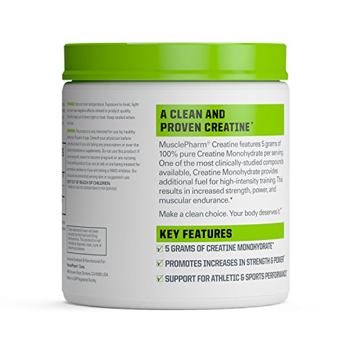 One of the most clinically researched compounds available, MusclePharm Creatine Monohydrate works to restore muscular energy levels depleted during exercise, resulting in increased strength, power, muscular endurance, and lean body mass. MusclePharm Creatine features 5 grams of Creatine Monohydrate per serving, delivering a maximal impact on athletic performance with every use.Feature