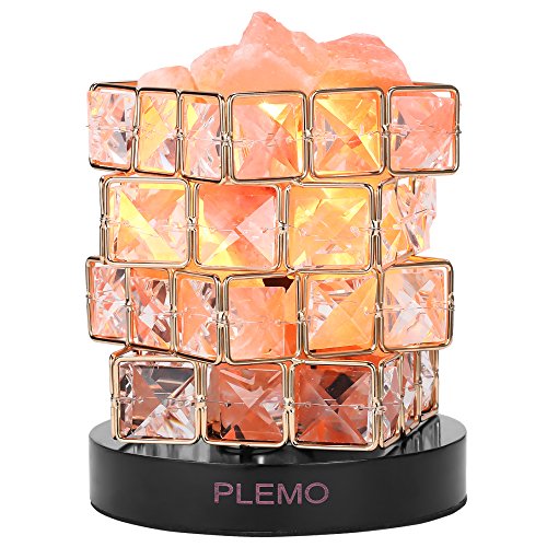 Plemo Himalayan Pink Salt Lamp Bedside Lamp with Natural Himalayan Rock, UL Listed Cord and Dimmer Switch with 2 x Bulbs