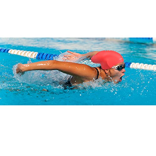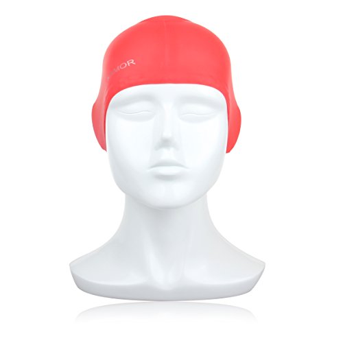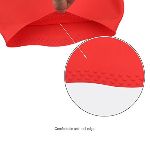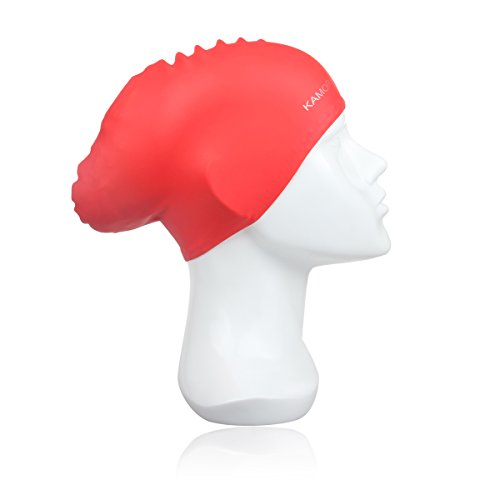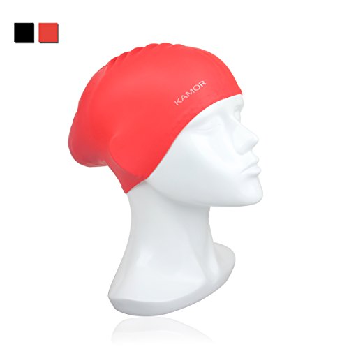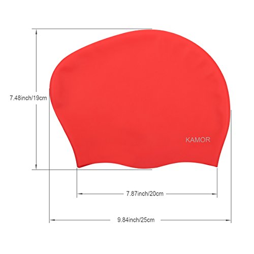 Kamor® #4 swimming/swim cap/caps - The premium large Silicone Swimming Cap/hat For Longer Hair & High-Volume Hair Styles with beautiful design - Protect long hair & Anti-slip & Highly elastic & Large stretch - Greater durability than latex swimming hats - Eco-Friendly, Non-Allergenic & Lightweight -more suitable for women/girls- Red