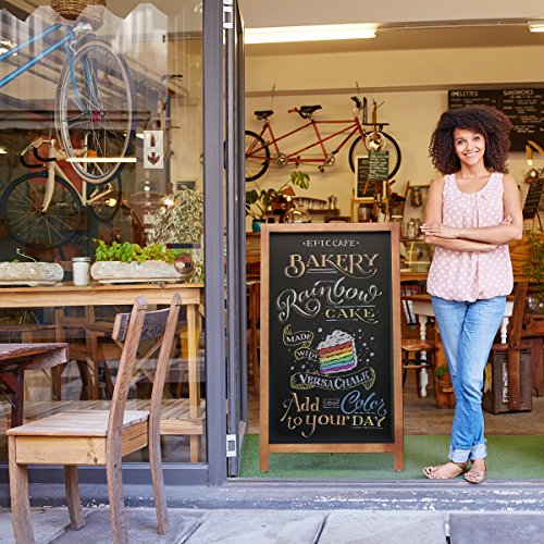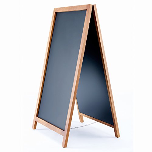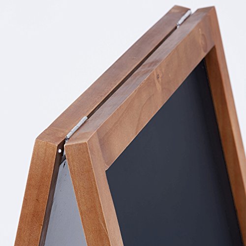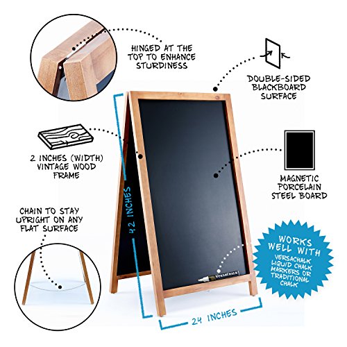 VersaChalk's Wooden A-Frame Chalkboard features porcelain steel board writing surface paired with an unpainted wooden frame. This is the absolute BEST quality board surface on the market that will NEVER ghost or stain. This chalkboard has a vintage look that goes great in any bar, coffee shop or restaurant. It's magnetic chalkboard surface allows even the usage of refrigerator magnets to personalize or design the chalkboard. Carefully packed in a cardboard box to ensure a safe arrival.