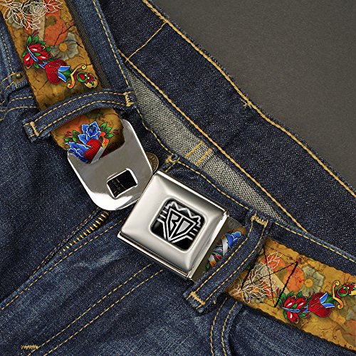 (Buckle Down)/Accessories/Belts Buckles/DIRECT FROM USA/Buckle-Down Buckle-Down Seatbelt Belt Tattoo Johnny Hearts Roses Kids Accessory, -Tattoo John...