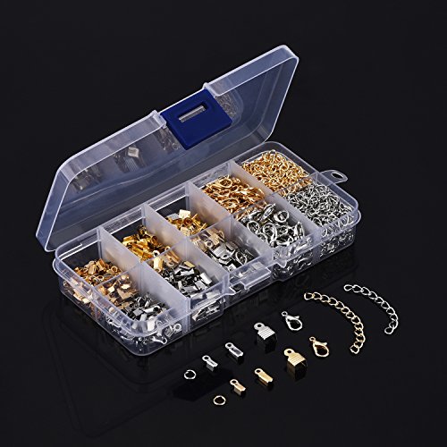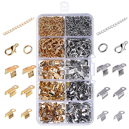 eBoot 1000 Pieces Jewelry Findings Kit Iron Fold Over Cord Ends Lobster Claw Clasps Jump Rings Extension Chains for Jewelry Making