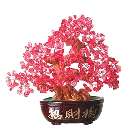 FengShuiYan 9.5" Rose Quartz Gem Stone Money Tree Natural Crystal Wealth Lucky Money Tree Office Living Room Great Housewarming Health Healing Gift & Home Good Luck Decoration