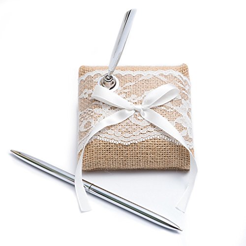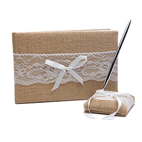 Meiysh Wedding Guest Book & Pen Set, Burlap & Lace, Wedding Decorations