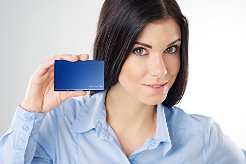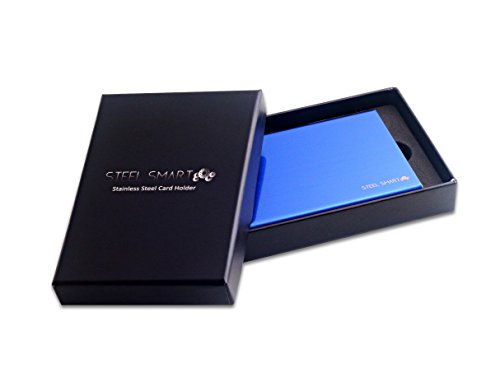 Credit Card Case with RFID Technology - Brushed Stainless Steel Business Card Holder For Men & Women - Credit and Debit Card Protector Against Financial Fraud & Identity Theft - (Black/Blue)