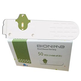 -. Binding : Health and Beauty -. Brand : Bionime -. Department : Diabetic Test Strips -. EAN : 0883489000385 -. Feature : The exclusive blade handle design make the strips easier to handle / Noble Metal Electrode Strip: This patented technology offers very accurate results, especially when glucose levels fall below 75 and over 200 / 1.0 microliter blood sample size / The Safety Design prevents the blood sample from contamination. No blood will get on your hands -. Label : Bionime -. Manufacturer : Bionime -. MPN : 8348900038 -. PackageQuantity : 1 -. PartNumber : 8348900038 -. ProductGroup : Health and Beauty -. ProductTypeName : HEALTH_PERSONAL_CARE -. Publisher : Bionime -. Studio : Bionime -. Title : Bionime Rightest GS550 Blood Glucose Test Strips- 50 ct. -. UPC : 883489000385