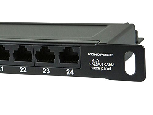 Monoprice 110036 Space Saver 19-Inch Half-U UTP 24-Port s Cat6A Horizontal 180 Degree Patch Panel Dual IDC