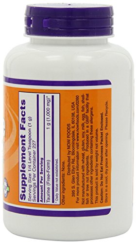 -. Binding : Health and Beauty -. Brand : Now Foods -. Feature : Helps the body absorb other nutrients with greater ease while moderating healthy cellular activity / It has also been known to exhibit antioxidant properties that may help protect macular regions of the eye -. Label : NOW Foods -. Manufacturer : NOW Foods -. MPN : 260 -. PackageQuantity : 1 -. PartNumber : 260 -. ProductGroup : Health and Beauty -. ProductTypeName : HEALTH_PERSONAL_CARE -. Publisher : NOW Foods -. Studio : NOW Foods -. Title : NOW Foods Taurine Pure Powder, 8 ounce