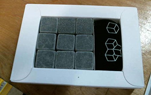 -. Feature : Includes a set of 9 Chilling Rocks, and a velvet Storage Pouch / Made From 100% Soapstone: Soapstone maintains its temperature for long periods of time, and is Regarded As Safe (GRAS) by the FDA and CE. Soapstone is made up of talc which will not react to water, alcohol and or other drinks / Simply place them in the freezer about 2-4 hours, Ready to use in hours / Unlike regular ice cubes, whiskey stones do not melt and dilute your drink; Well Preserve the Taste your favorite drink / The approximate size of each stone is 1.8cm³. Best to use 3 Rocks per drink. Perfect as a gift or for your next Cocktail Party