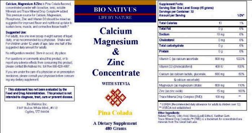 -. Title : Bio Nativus Calcium Magnesium Zinc Concentrate w/ Stevia Orange 480 grams