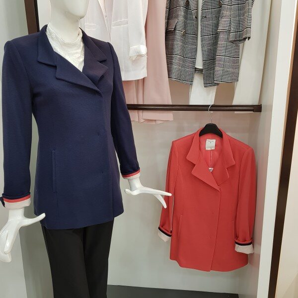 힙을덮는 기장으로 체형커버에 좋고소매배색으로 포인트를 준 자켓봄가을추천