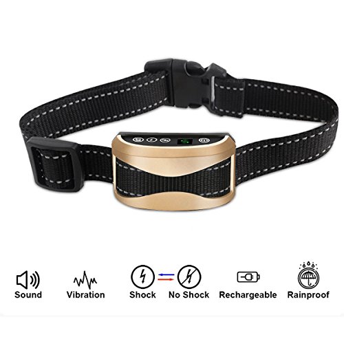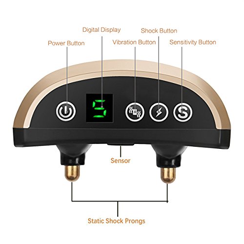 FEATURES: The digital tube shows the gears of vibration, sound and sensitivity 1-7 gears you can choose to adjust the sensitivity, 1 gear for the least sensitive, 7 gear for the most sensitive. 0-7 gears you can choose to adjust the vibration, when the vibration gear is 0, the product does not vibrate. 0-7 gears you can choose to adjust the sound. When 0 gear is chosen, the product will remain silent. 1st gear will bring 0.5-second-long sound. 7th gear is the highest level, Which will make a 3.5-second sound. It fits all dogs from 15-150lb. Adjustable Reflective Strip -- That allows you to keep an eye on your dog even in low visibility and also can protects your dog's life from cars etc. Automatic protection -- an automatic protection mode to deactivate the collar if activated 7 times in 1 minute then back to work in one minutes.