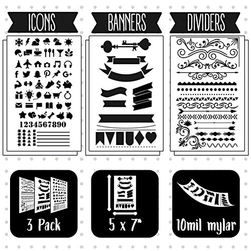 BULLET JOURNAL STENCIL SET - Banners, Dividers, & Icons | Fits Leuchtturm & Moleskine A5 Notebooks | Best used with Huhuhero Fineliners & Sakura Micron Pens …