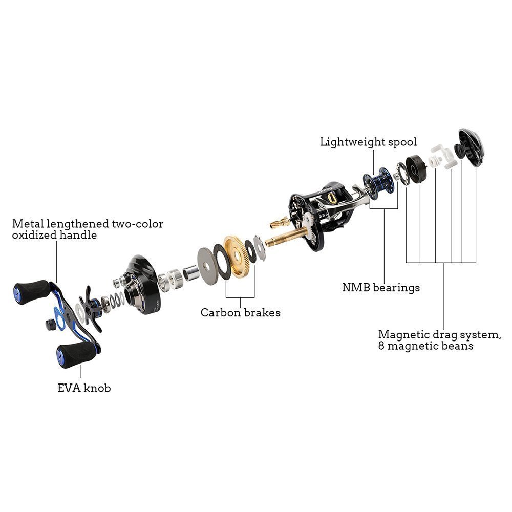 6. Ultra light weight CNC aluminum spool, you can fish in a long time.