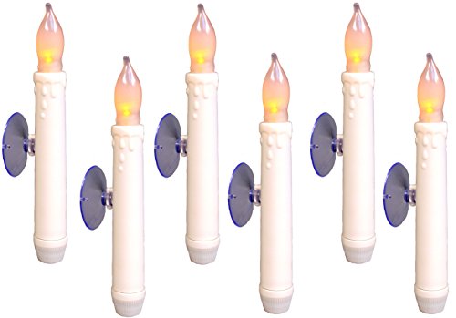 Creative Hobbies Battery Operated LED Tapered Candles w/ Flickering Light Bulbs & Suction Cups For Window Displays, Box of 6 Candles