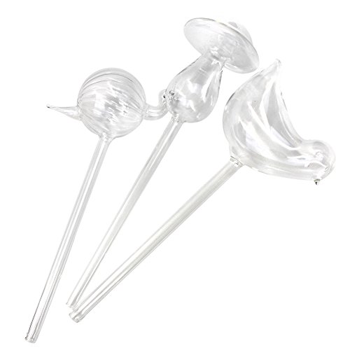 Md trade Set of 3 Plant Self Watering Globes Automatic Hand Blown Clear Glass Mini Different Shapes (Mushroom, Bird,Snail)