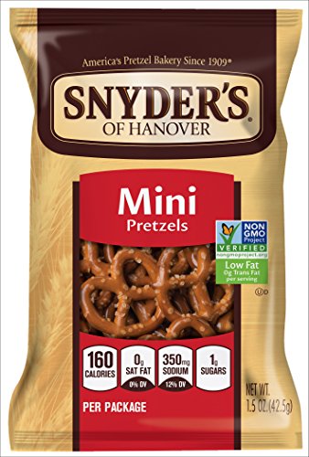 Our Mini Pretzels offer all the naturally delicious flavor of traditional pretzels in a crunchy, bite-size snack - a family favorite for generations! They're perfect for snacking at home or on-the-go. You'll love this fun, flavorful fat-free snack. 1.5 oz individual size is perfect for a snack on the go. 48 bags of mini pretzels per case.