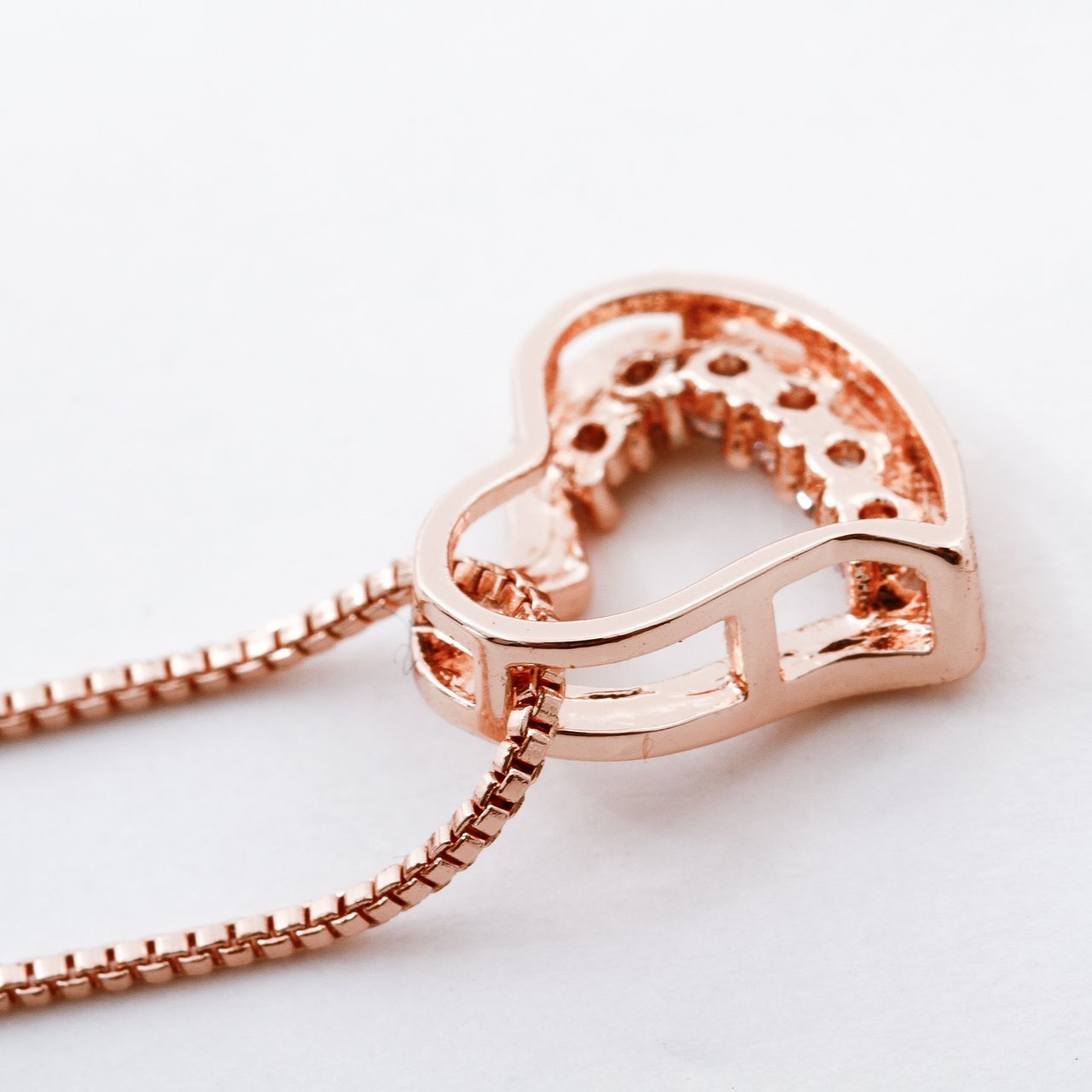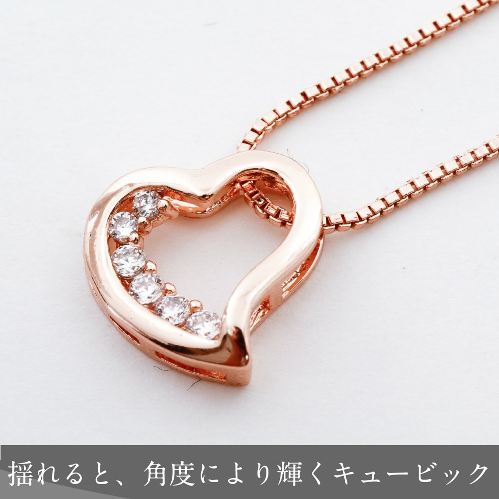 Like a diamond, please enjoy the open heart necklace using high quality cubic zirconia beautifully shining elegantly.