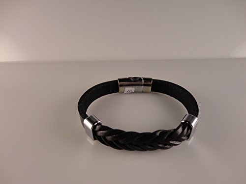 -. Title : Leather Bracelets for Men Bangle Bracelets Fashion Magnetic Clasp, Black Color, Size 8'' by Handmade Studio HS3415L