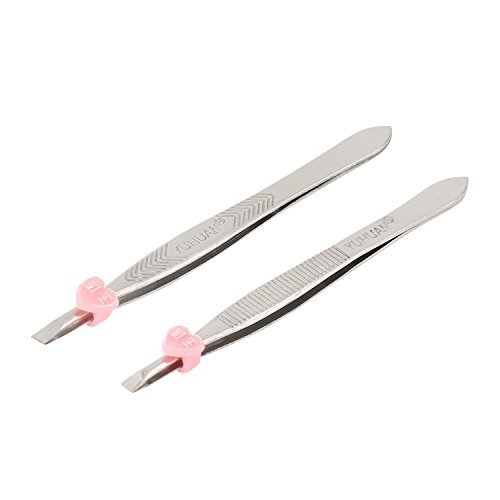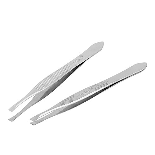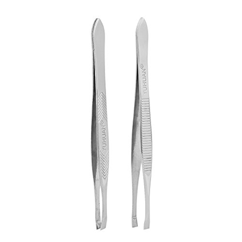 HonYan 2pcs Eyebrow Tweezers Fashion Stainless Steel Slant Tip Tweezing for Women, Slanted Edge and Flat Clip Hair Remover Tweezer Sidelong Style...