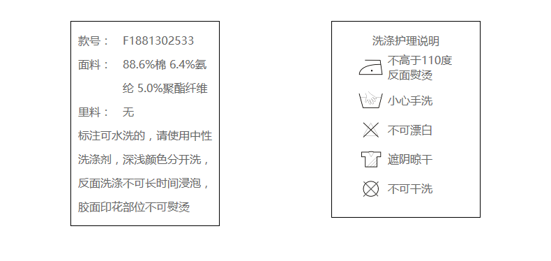 88.6%棉 6.4%氨纶 5.0%聚酯纤维