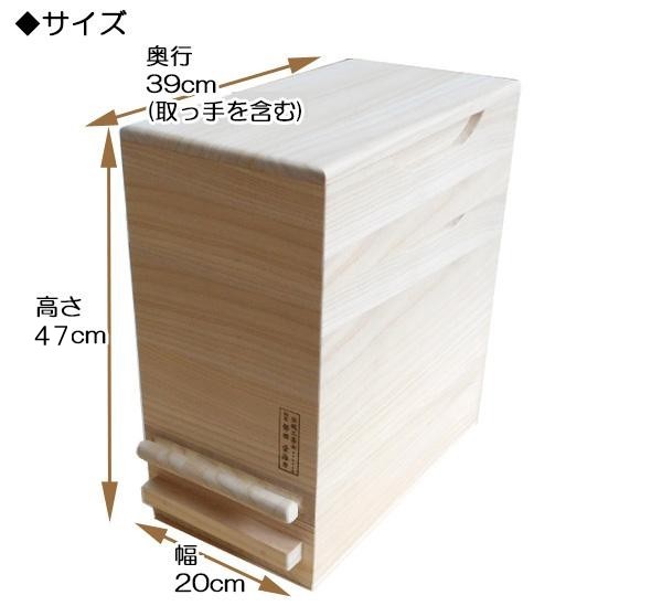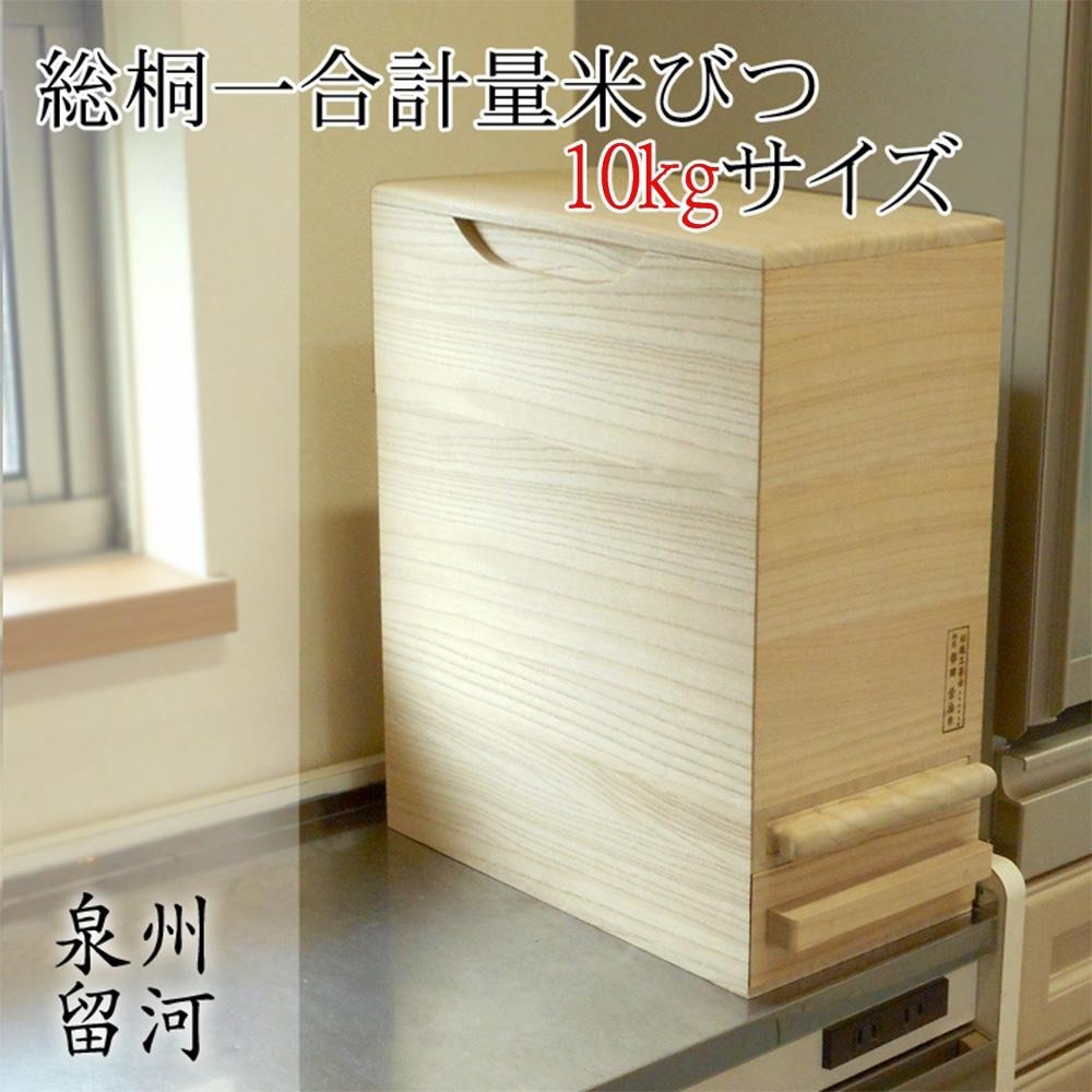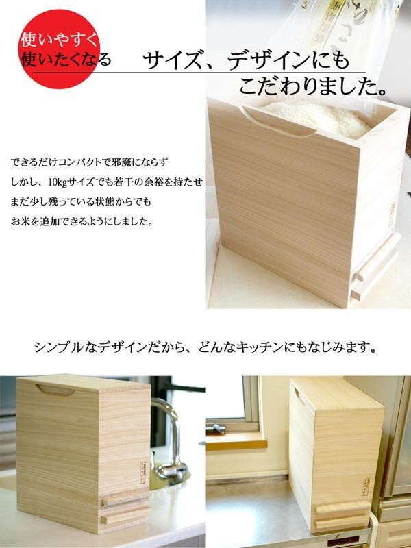 シンプルなデザインで、どんなキッチンにもなじむ桐製の米びつです。通気性が良いので、お米をおいしいまま保存できます。 |