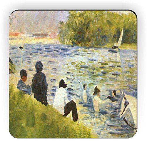 Rikki Knight Georges-Pierre Seurat Art Bathing with White Horse in The River Design Square Fridge Magnet