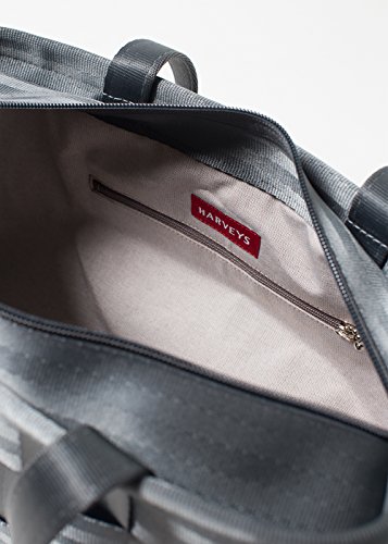 Hand woven and accented in seatbelt. Fully lined with inner zip pocket and extra slip pockets for storage. Features top carry handles and zip top.