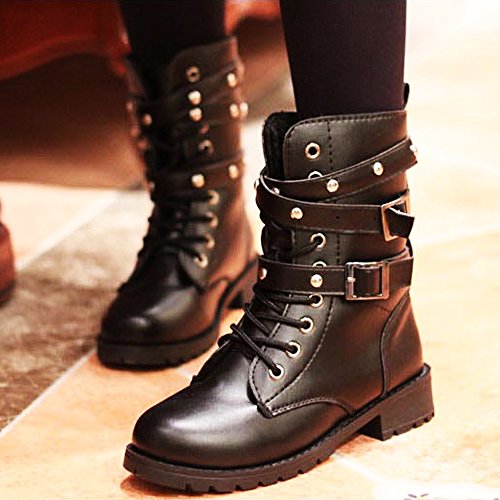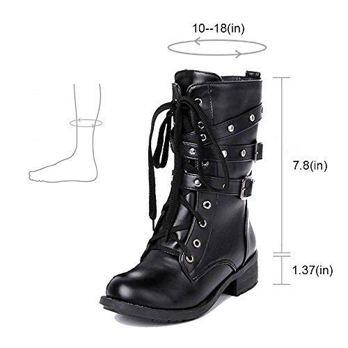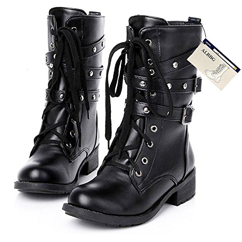 ???Material: Synthetic Leather ???Platform height: 0.6 inches ???Dome circumference 9.4 inches ???Feet high: 1.38 inches ???Shaft height: 8 inches ???Combat boots?Using of meticulous workmanship, the use of waxing treatment of waterproof lines, durable wearing。 ???Martin boots?The mountains are calling,Walk with our boots on foot adventure Splish splash in muddy puddle while having your hands free ???ALBBG boots, let your inner girl rock. It highlights the personality of the black leather to create high quality, durable product attitude filling,and thick soles will silhouette some toughness given to it. In this interesting discovery, the boots perfect fit, like a rock star.. ???ALBBG as a women's clothing cosplay company is committed to creating durable, high-quality shoes brand.Discover the beauty of women, explore the more practical product experience is our philosophy. Good travel.party, dance, work, shopping, whatever you want, we can support you. NO QUESTIONS ASKED 30-DAY GUARANTEE: No need to guess - take a full 30 days to ensure they fit. If they don't meet your expectations, simply return them unworn for a no questions asked refund.