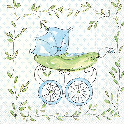 Ideal Home Range C707649 Rosanne Beck 20 Count Paper Cocktail Napkins, Blue Baby Carriage