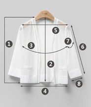 | 尺码 | ①前衣长 | ②后中长 | ③胸围 | ④下摆围 | ⑤肩宽 | ⑥袖长 | ⑦袖臂围 |