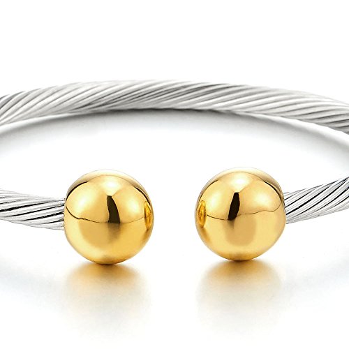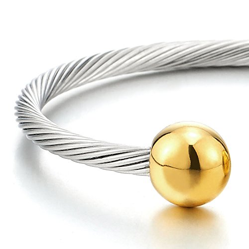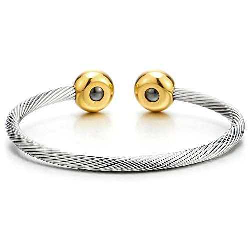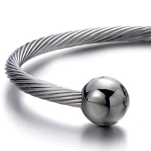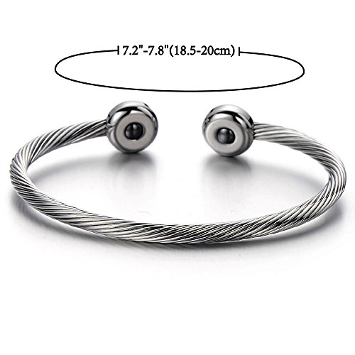 -. Title : Elastic Adjustable Mens Stainless Steel Twisted Cable Magnetic Bangle Bracelet Silver Color Polished