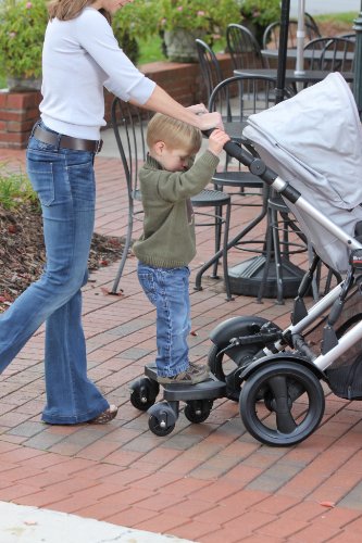 - Feature : Easily attaches to most strollers providing travel options for additional children / 50 pounds weight capacity / Three wheels with independent suspension provide balance and child comfort / Quick release feature allows the removal of the stroller board while the mounting bracket remains installed / Storage strap to position the board out of the way when unoccupied