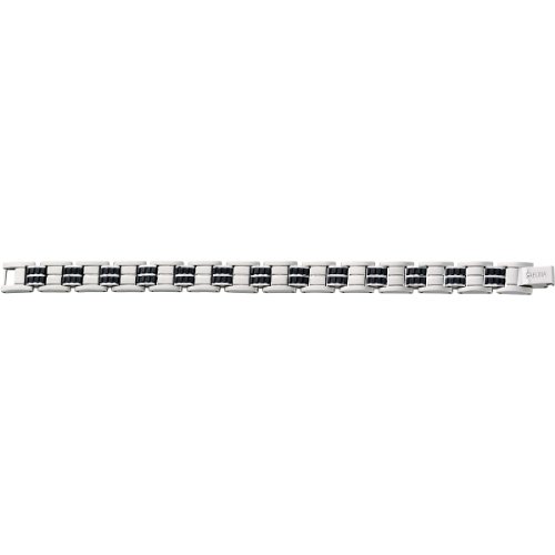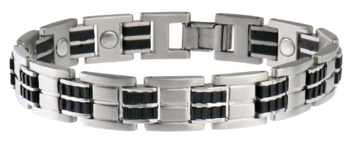 Black and stainless make a great combination! And this new black rubber and stainless bracelet combo compliment the current fashion trends very well. A 1200 gauss samarium cobalt magnet is in each large link.Feature