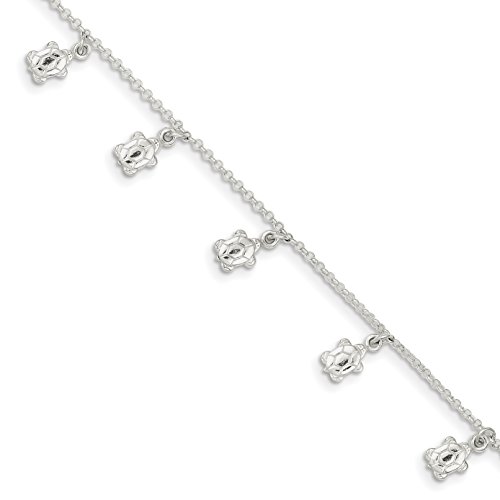 ICECARATS DESIGNER JEWELRY 925 STERLING SILVER TURTLE 1 INCH ADJUSTABLE CHAIN PLUS SIZE EXTENDER ANKLET FOR WOMEN ANKLE BEACH CHAIN BRACELET