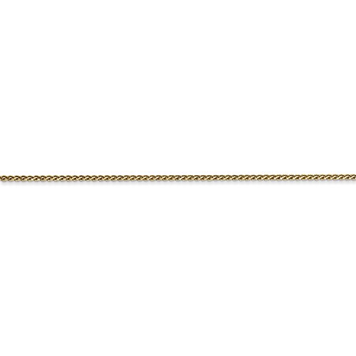 SPECIFICATIONS: Jewelry Type: Anklets, Chain Type: Spiga (Wheat), Anklet Type: Chain Styles, Material: Primary: Gold, Material: Primary - Color: Yellow, Material: Primary - Purity: 14K, Chain Length: 9 in, Chain Width: 1mm, Clasp /Connector: Lobster, Feature(1): Solid, Texture: Diamond-cut