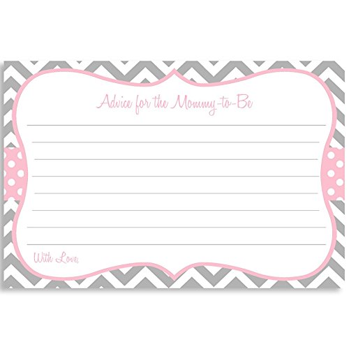 Baby Shower, Advice to Mommy, Pink, Chevron Stripes, Girls, Polka Dots, It's A Girl, Gray, Grey, Sprinkle, Mommy to Be, Set of 24 Printed Note Cards,...