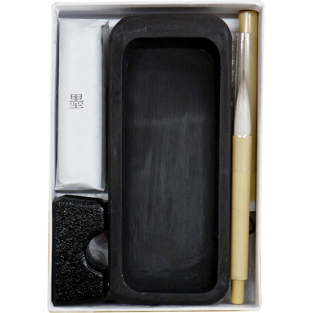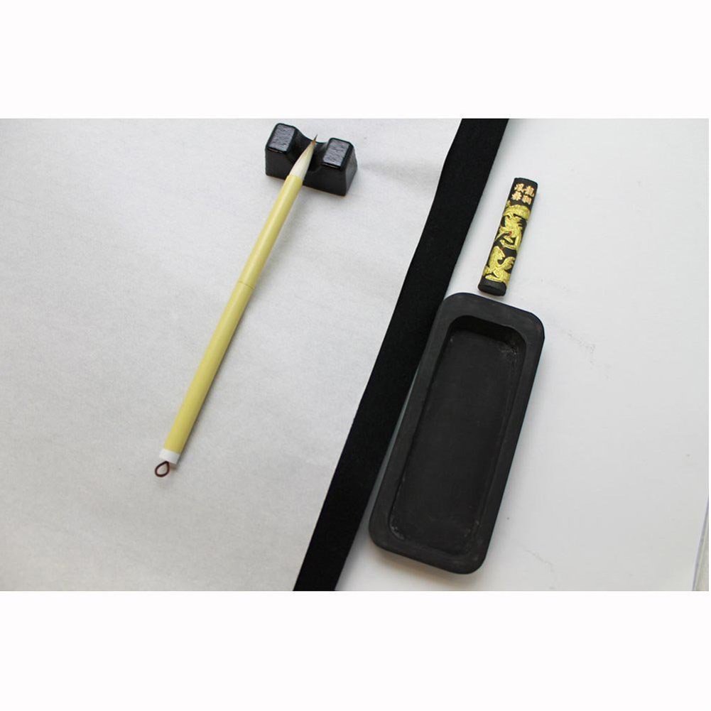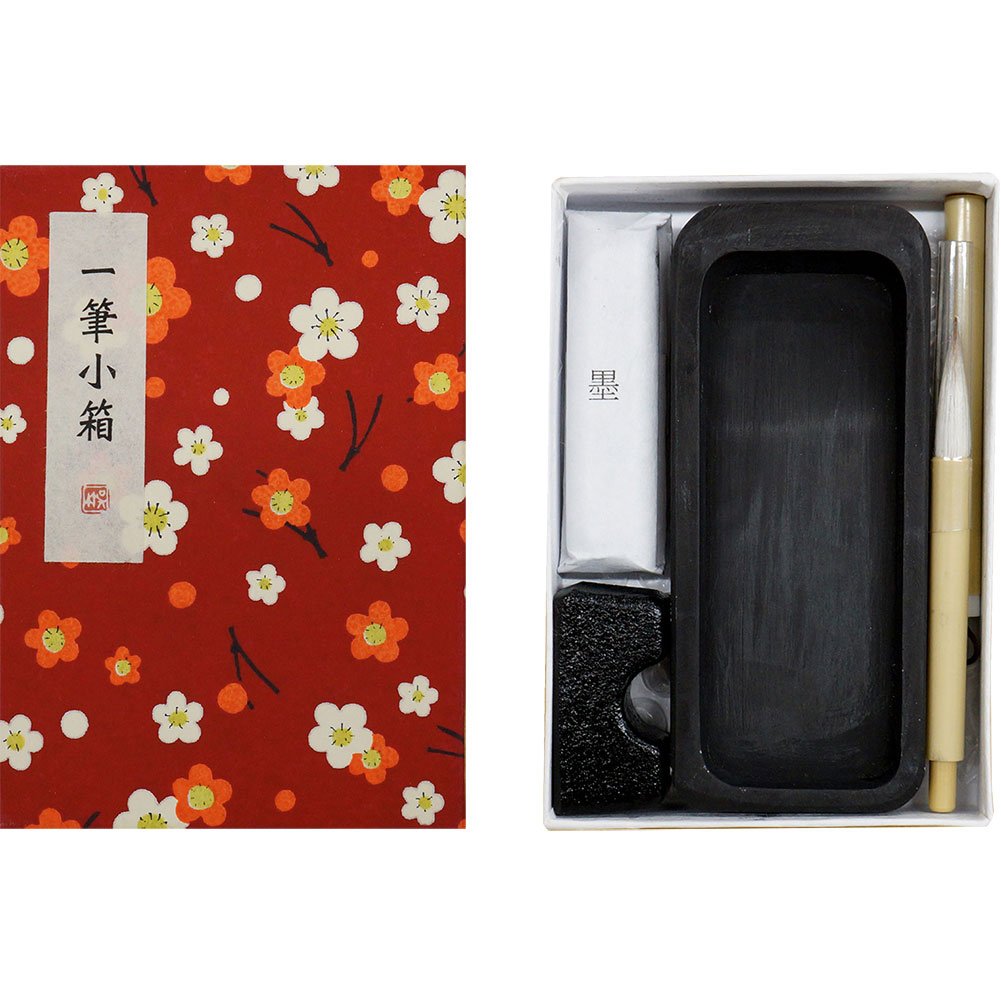 I set a small brush, ink, cotton, paperweight on a small and cute paper box.